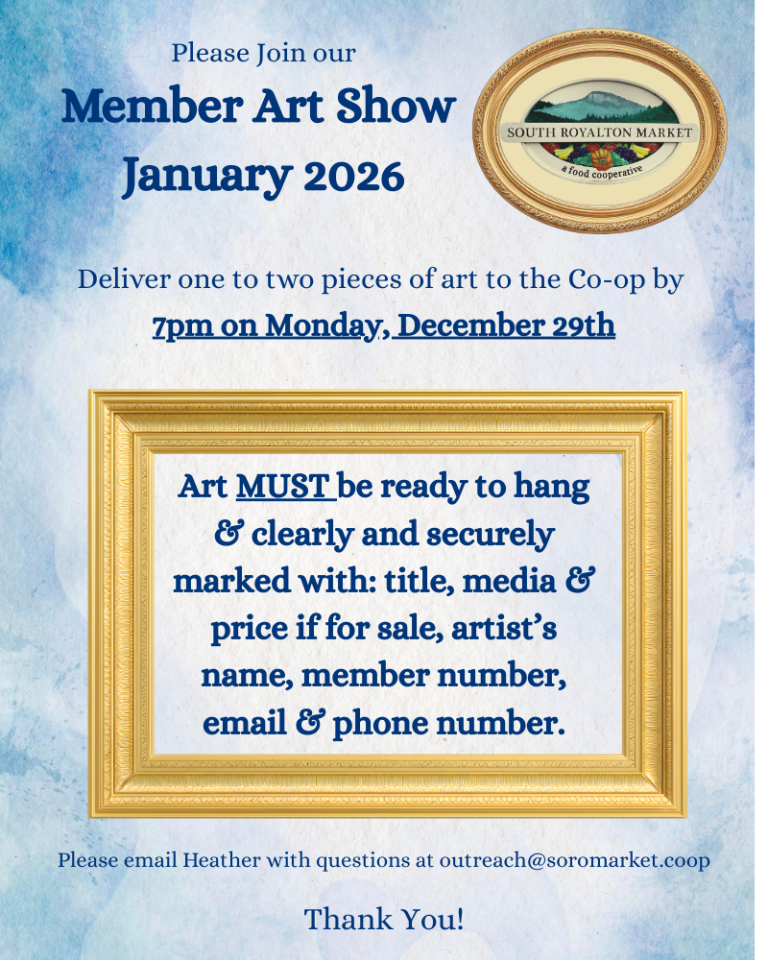 Building a strong community around good food is what food cooperatives are all about. Our particular co-op is a bit unusual; we proudly stock every department with local as well as more mainstream products. This strategy makes for a resilient local economy and ensures food security within our community while also rounding out our selection to truly make us a village sized, full service grocery store.
