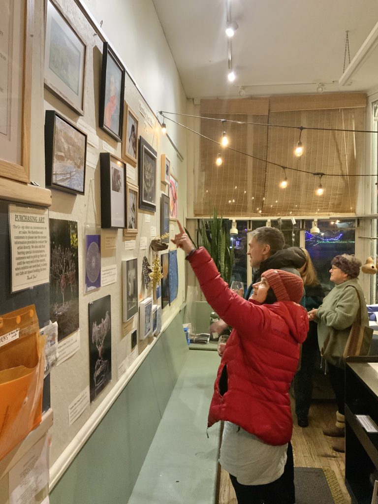 Art brings communities together! This is why we feature local artists in our Cafe Art Space every month. Often just one artist is featured, and their work is usually for sale. Sometimes we exhibit the collective works of local school art classes, child care centers, library book clubs and the like.