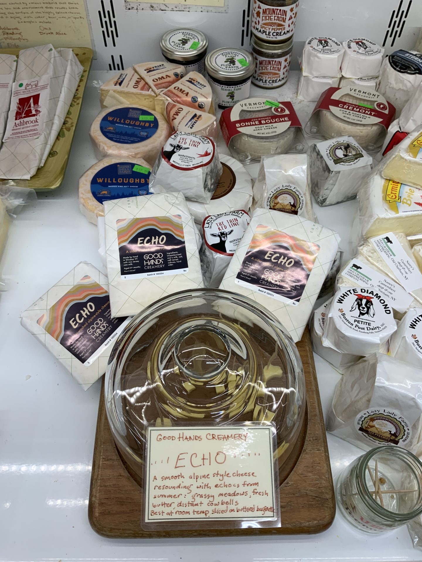 Happy FREE cheese sample Thursday! We absolutely LOVE sampling local cheeses for our community to discover and fall in love with and Echo from Good Hands Creamery in Windsor, VT https://www.goodhandscreamery.com/ within echoing distance of Mt. Ascutney, is no exception! Our cheesemonger Elizabeth has this to say, “a smooth alpine style cheese resounding with echoes of summer: grassy meadows, fresh butter, distant cowbells.” Great cheese comes from the milk of happy cows, and the raw Jersey milk that is used to make this cheese is from a herd of contented ladies! Supporting our local cheeses makers is a wonderful way to strengthen not only our local economy, but our local food system and our local culture!
