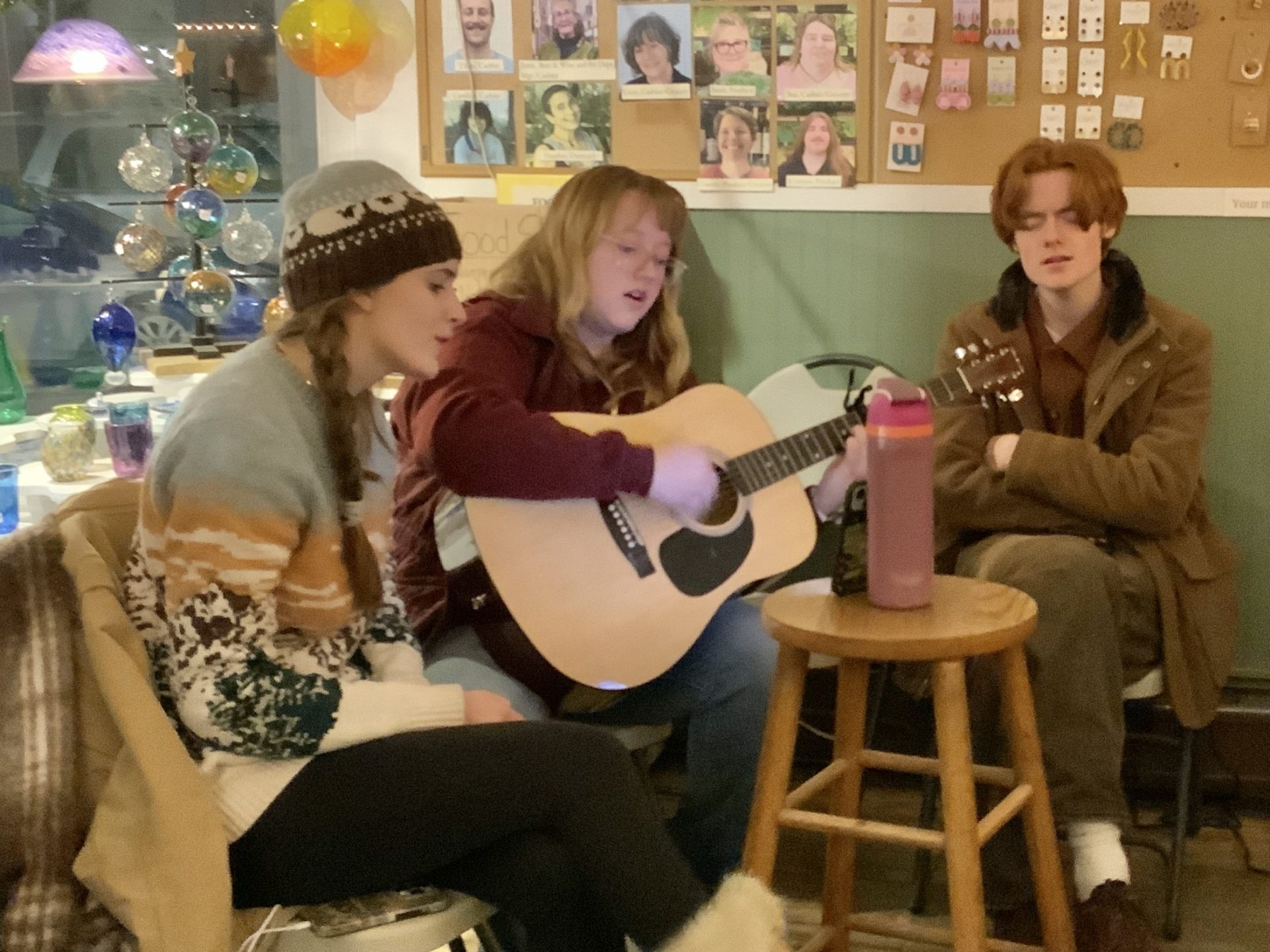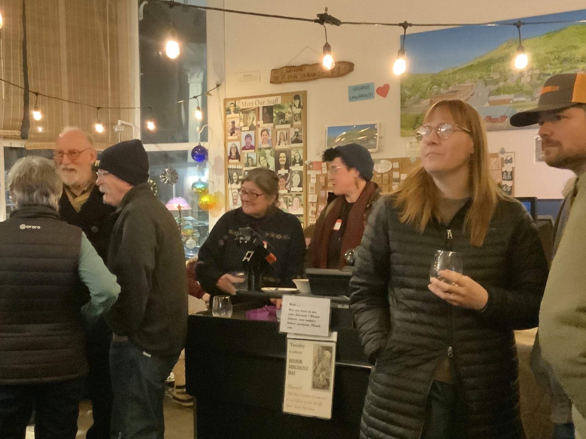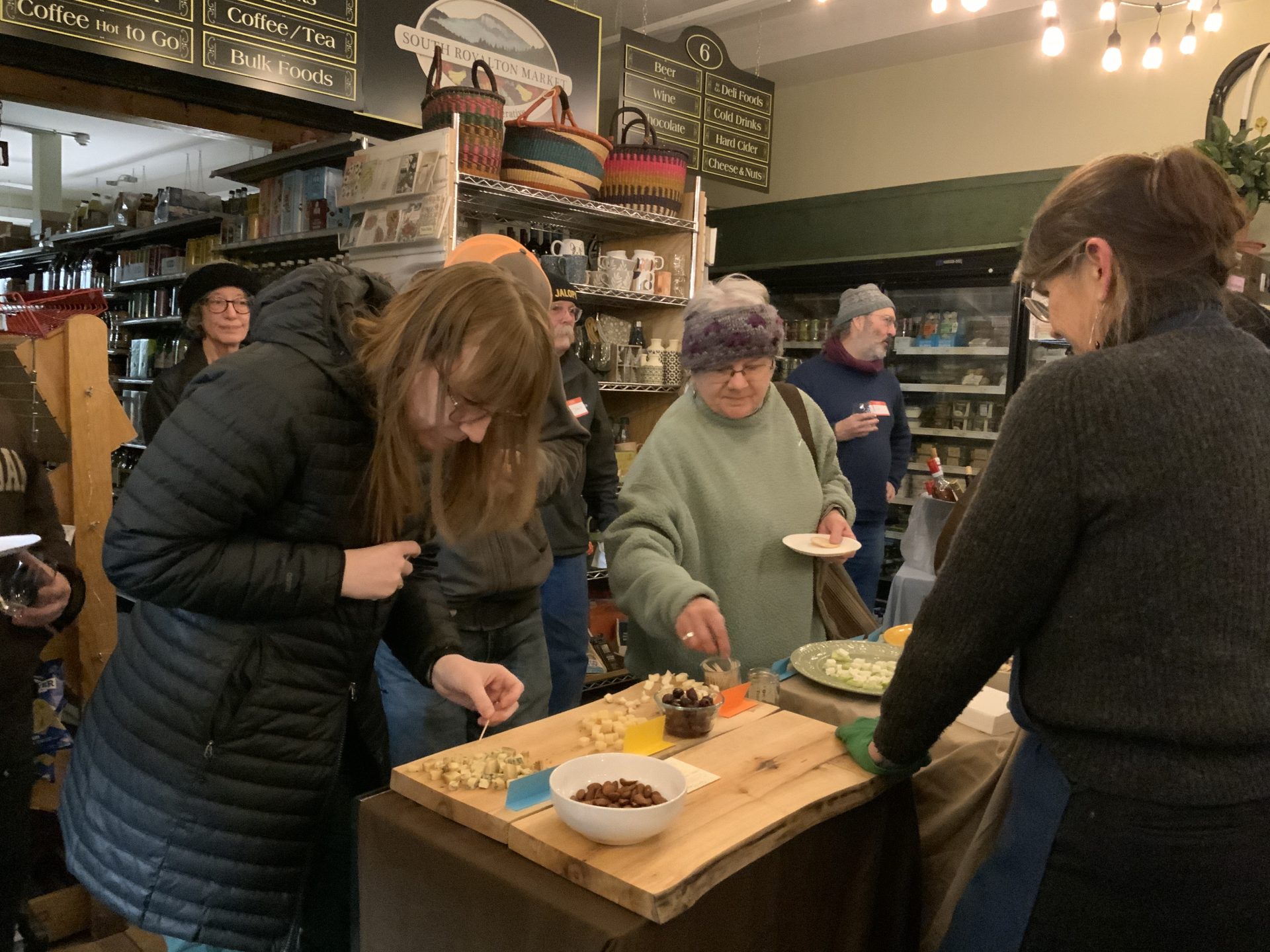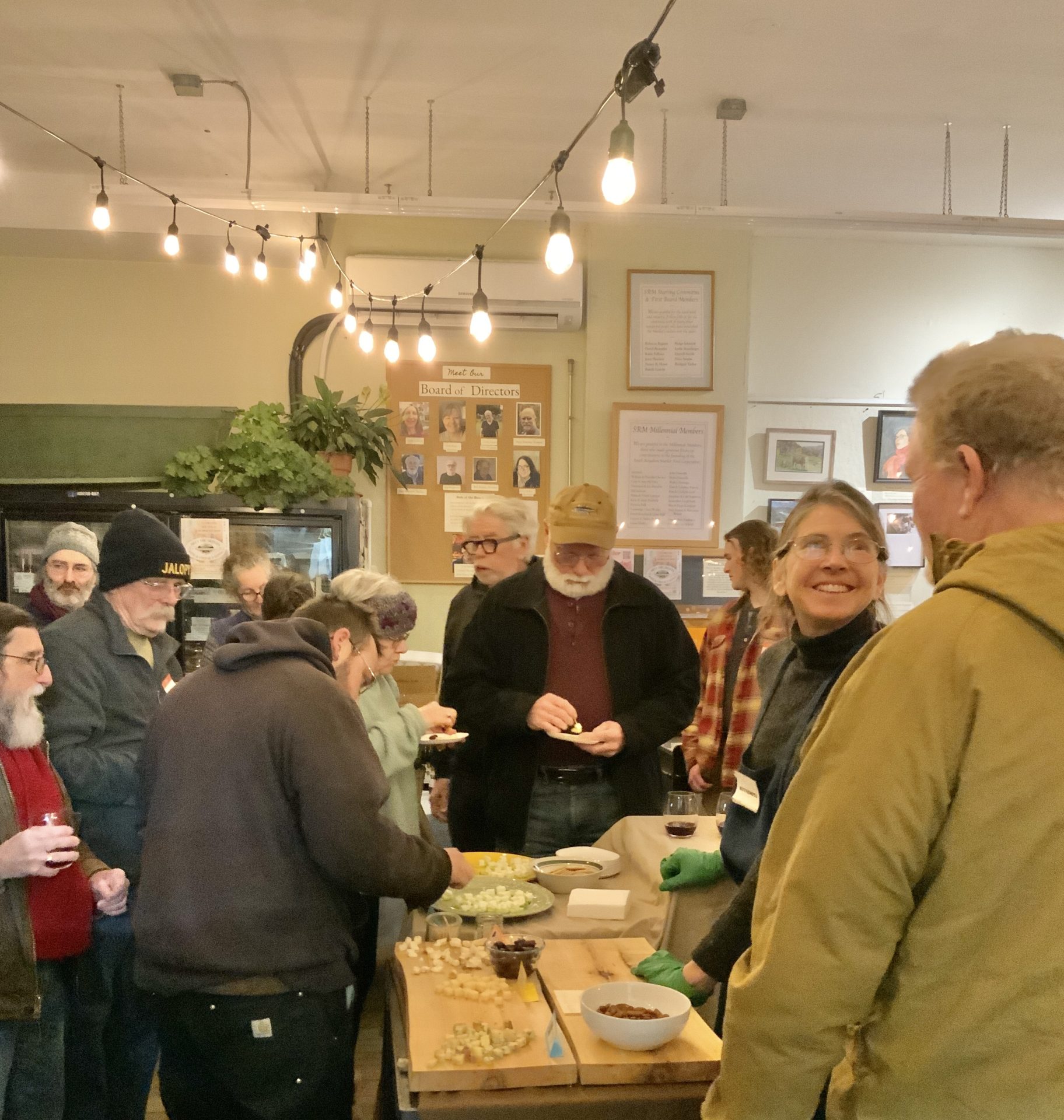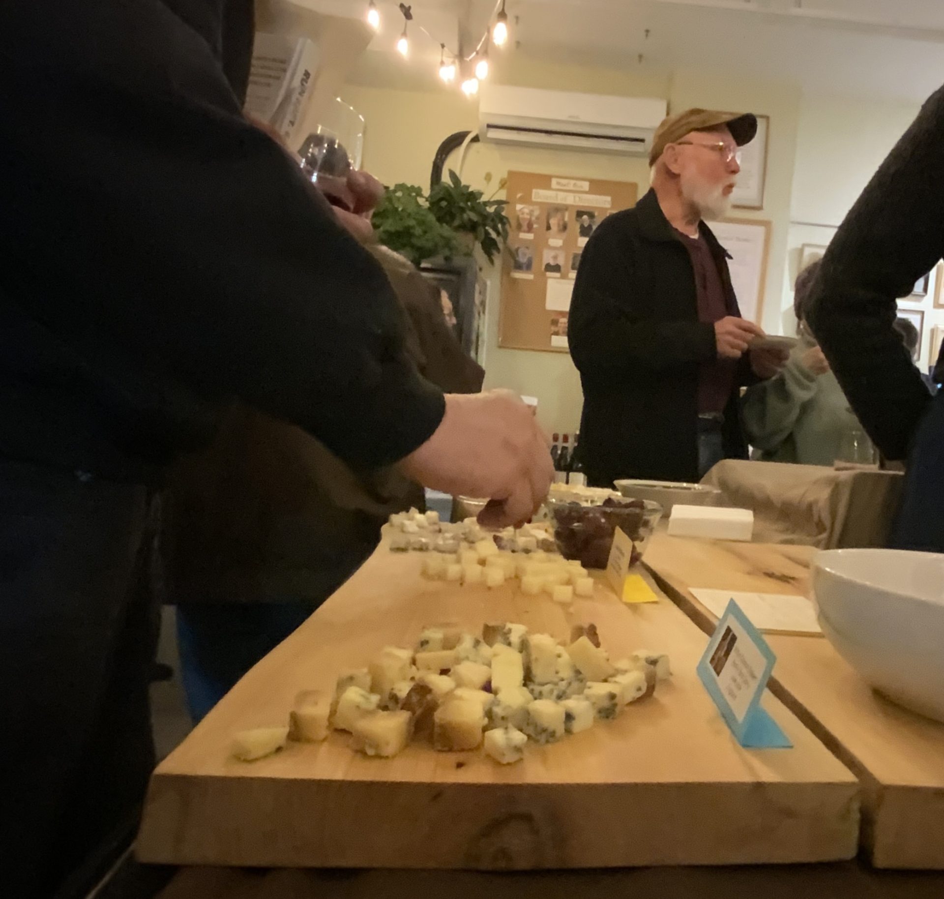 We enjoyed a full house at our Meet our Member Artists Wine and Cheese Tasting yesterday evening. Nearly all of our 13 artists were in attendance and we were even entertained by a trio of talented WRVHS music students. Many folks expressed appreciation at the opportunity to learn about new wines, cheeses and pairing them under the guidance of our wine buyer, Janet, and cheese monger, Elizabeth. What a great way to chase the winter blues away and warm up inside and out on a frigid night. We had a ball!