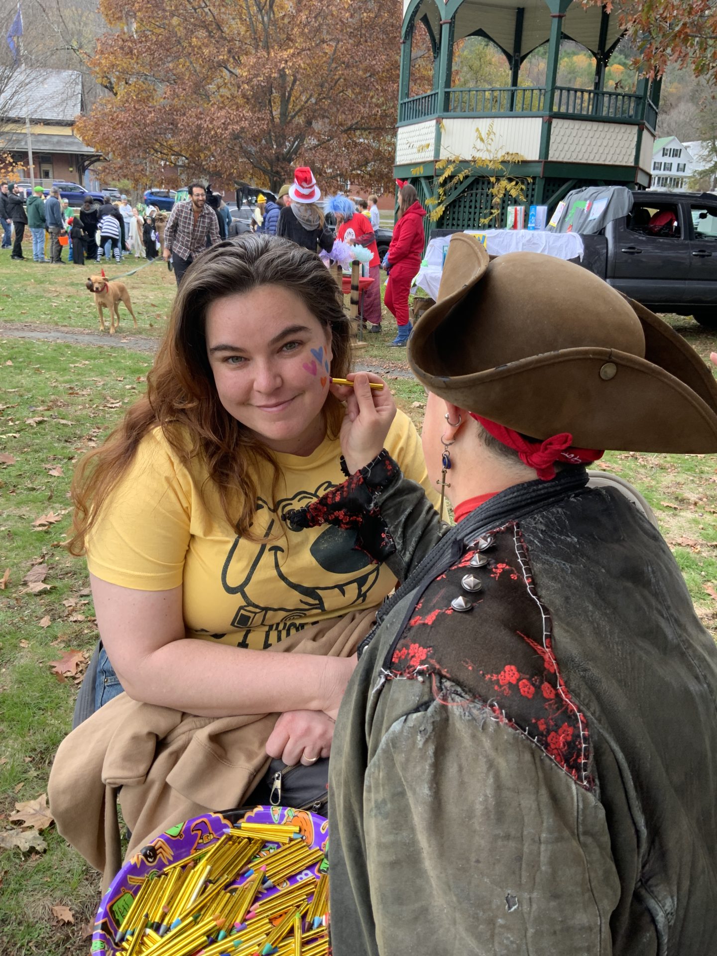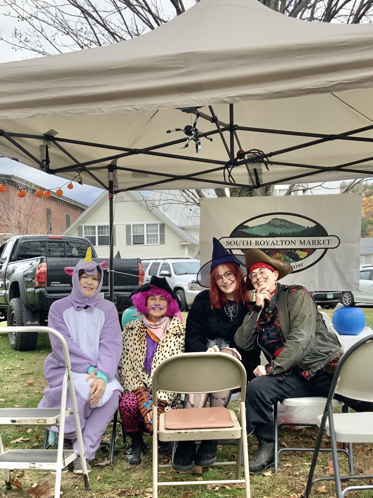 We are grateful each year to the town of Royalton for hosting their Halloween celebration, Trunk or Treat, on the SoRo green. This is a mighty special, safe and sweet community event where so much costume creativity is displayed! For the past handful of years, the Co-op has been offering free face painting and we did it again last Saturday. One change to note is that for the first time, we had adults sit down to have their faces painted right along side the kiddos. What a fabulous time!